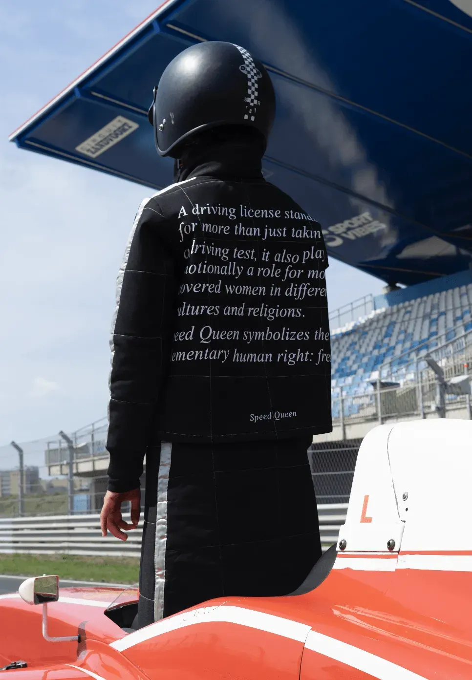 The choice of the term "Speed Queen" adds a layer of strength and independence to the narrative. It positions the covered woman as a sovereign entity navigating life's journey with skill, precision, and control, much like a queen on a race track. The juxtaposition challenges stereotypes that suggest religious clothing impedes mobility or signifies a threat.